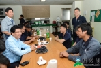 산내면발전협의회기와 명패 전달하는 정기주 전회장